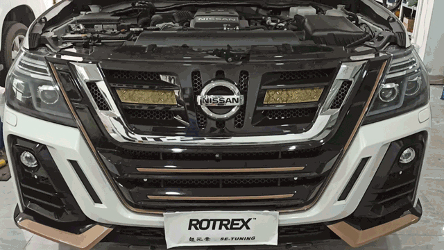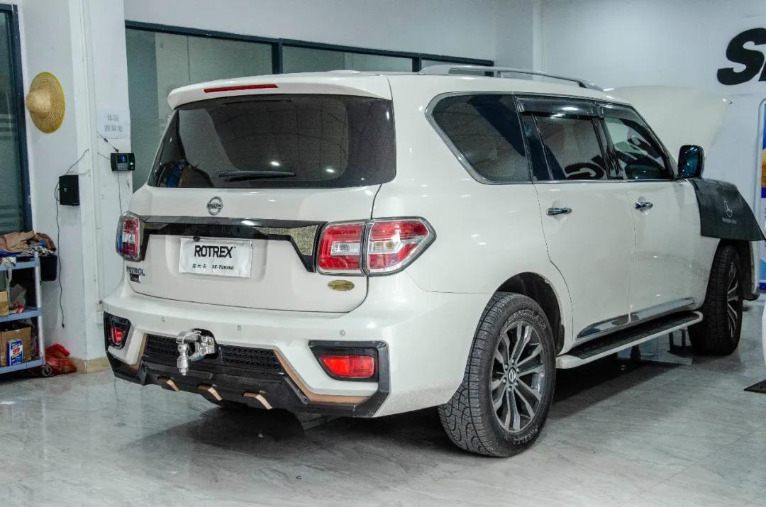 相信关注途乐的朋友对于途乐NISMO的包围套件已经见得不少了,白色镶红的各式包围着实大大地提升了途乐的运动的气质,看上去便十分唬人。不过这次的这台途乐却有着不一样的风格,包围中的黄金色的点缀和丰富的图形元素,使它的气质雍容却不失霸气。
