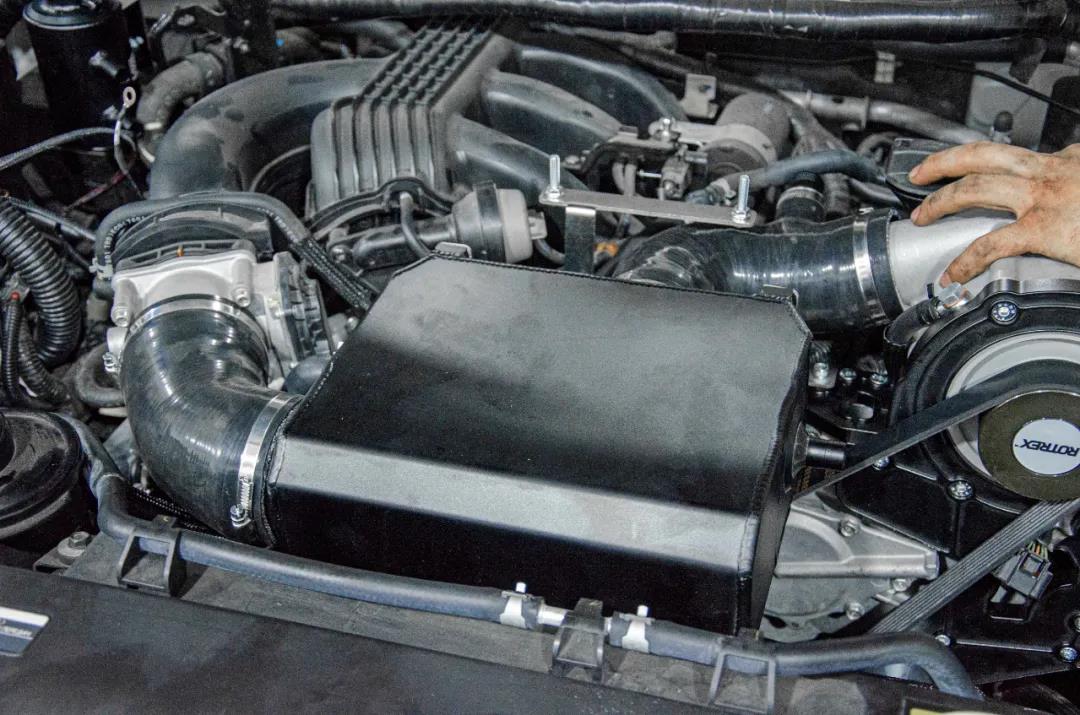 安装支架前需要把原车的进气管道移除。接着分别把数块增压器支架固定在原车的螺栓位上,下一步便可以固定ROTREX增压器本体。